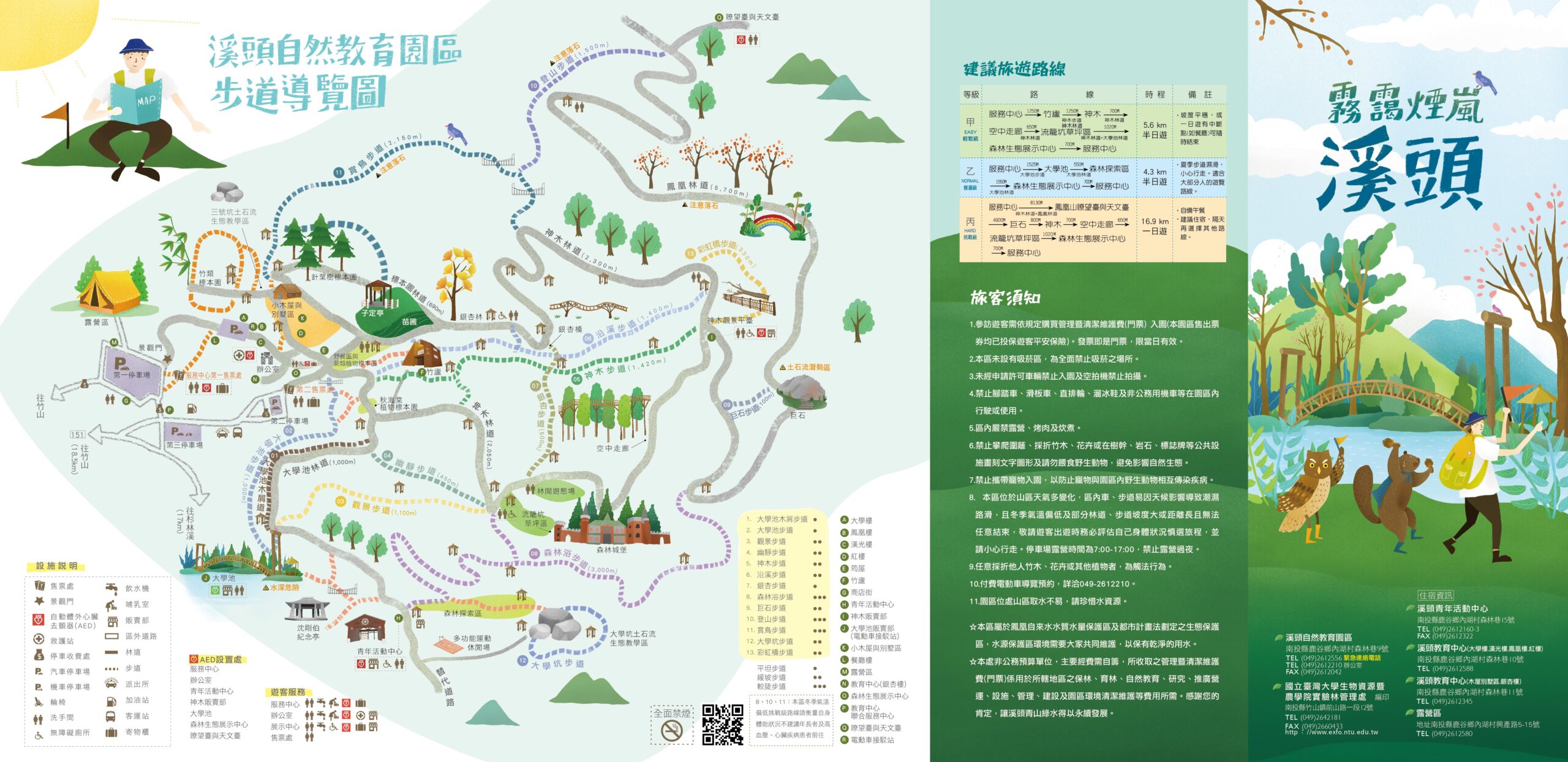 早餐→溪頭自然教育園區(大學池、空中走廊、竹廬、苗圃、銀杏林、神木、九二一大巨石、賞鳥步道、活動中心)→午餐→回程