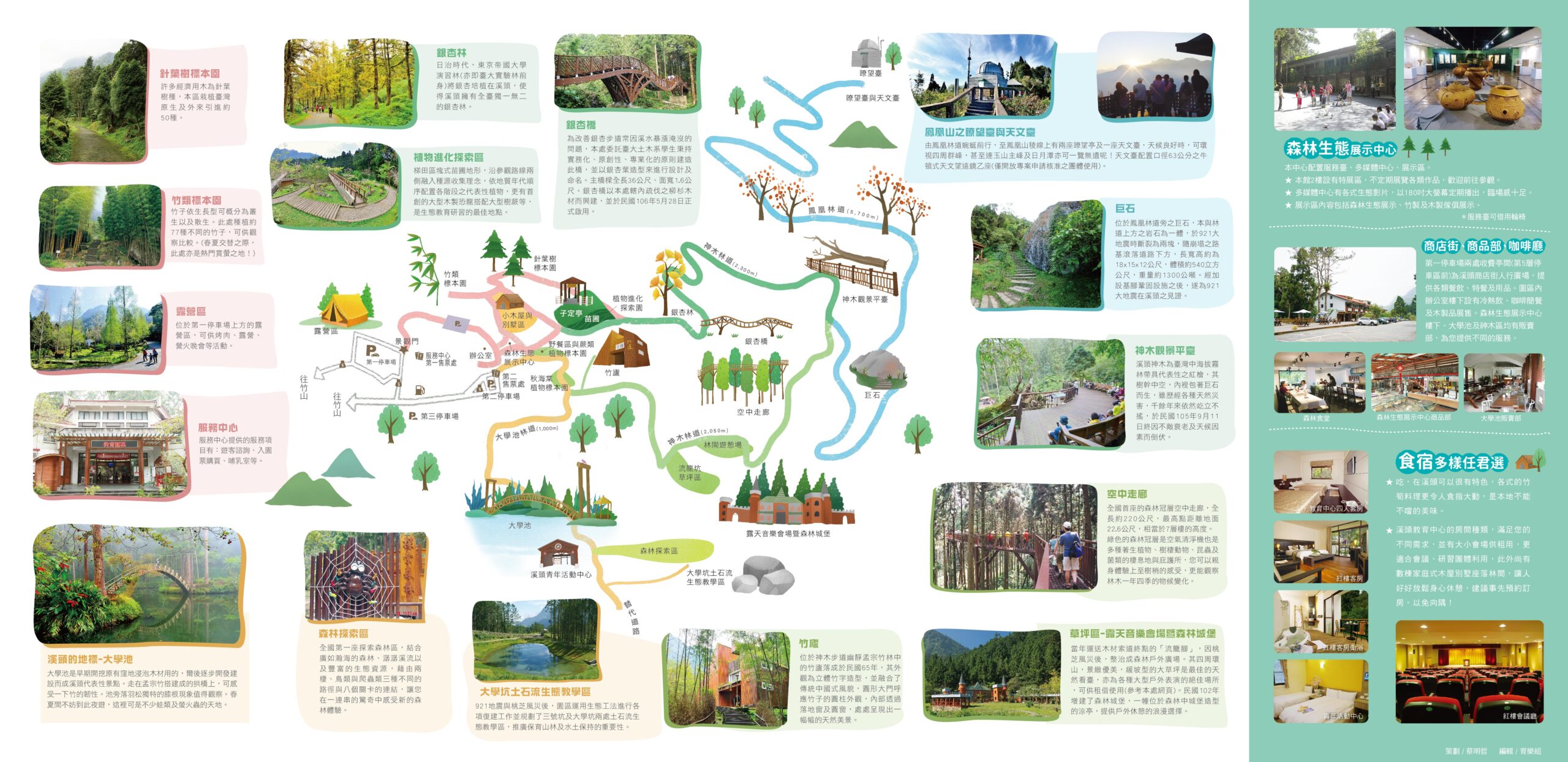 溪頭自然教育園區(大學池、空中走廊、竹廬、苗圃、銀杏林、神木、九二一大巨石、賞鳥步道、活動中心)→夜宿溪頭活動中心。