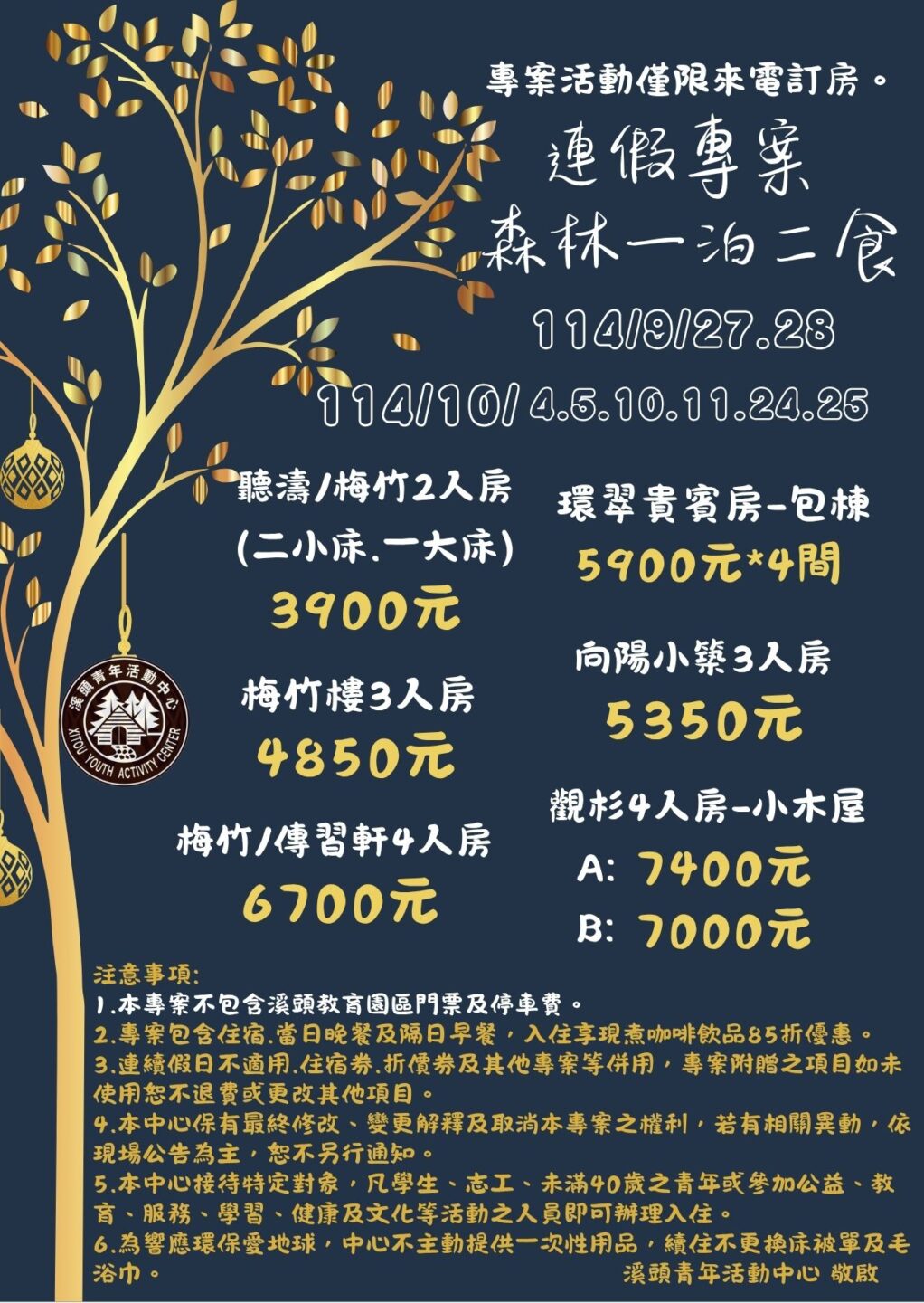 4.本專案不含溪頭教育園區門票及停車費。